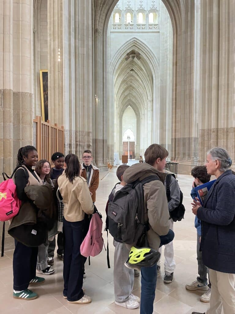 À la cathédrale, ils ont participé à un atelier original en se mettant dans la peau de bâtisseurs. À l’aide d’éléments en bois, ils ont reconstitué une voûte gothique, découvrant ainsi concrètement les principes d’équilibre et d’architecture qui permettent à ces édifices impressionnants de tenir debout depuis des siècles.