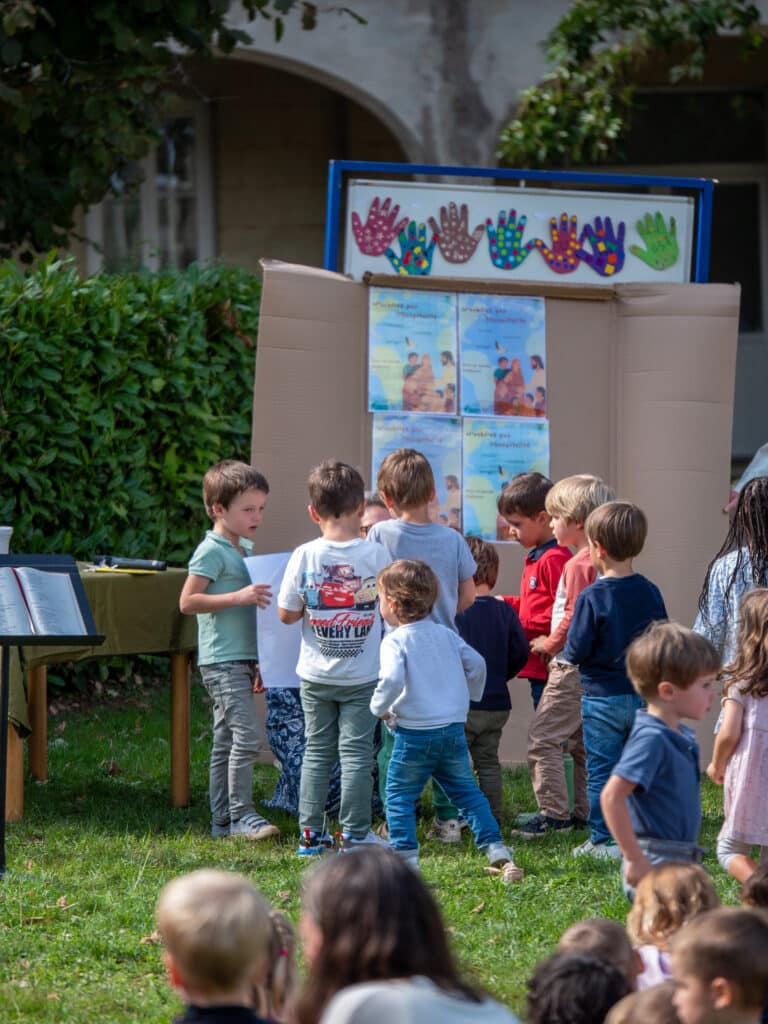 Le vendredi 5 septembre, les élèves de maternelle et d’élémentaire de Blanche de Castille Nantes ont vécu un temps fort pour marquer le début de l’année scolaire : la célébration de rentrée, organisée dans la cour Anjou.
