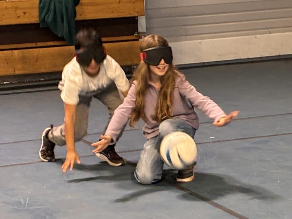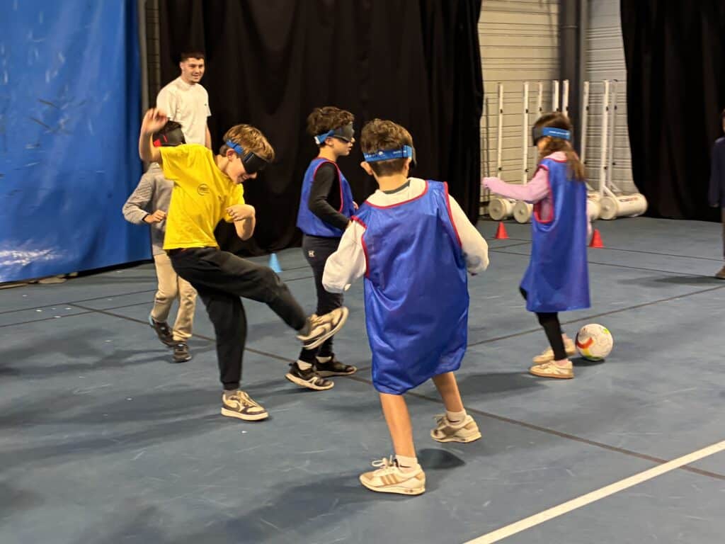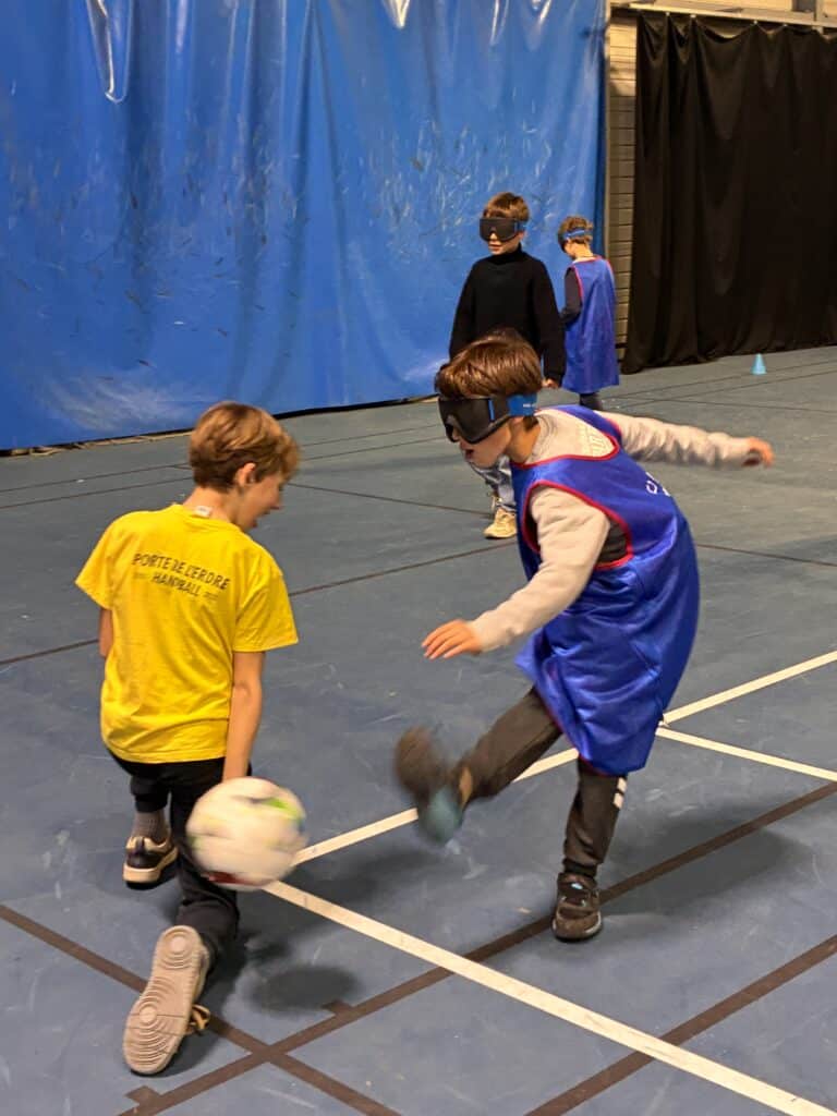Ils ont ensuite participé à une partie pratique en expérimentant deux disciplines : le goalball et le cécifoot.