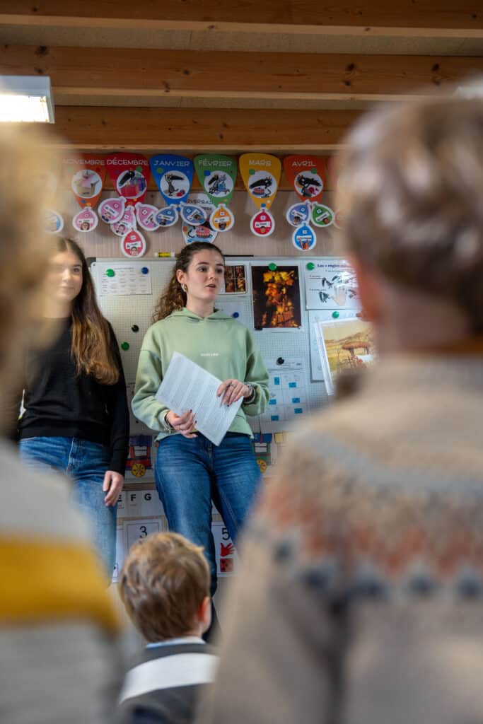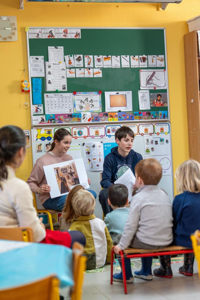 Temps fort de la journée : les élèves de Seconde se sont rendus auprès des élèves de maternelle et d’élémentaire pour partager, avec simplicité, la vie et le message de Sainte Angèle. Une belle expérience de transmission entre les âges, à hauteur d’enfants, qui a donné tout son sens à cette fête.