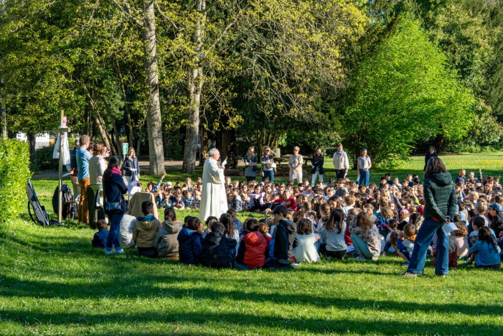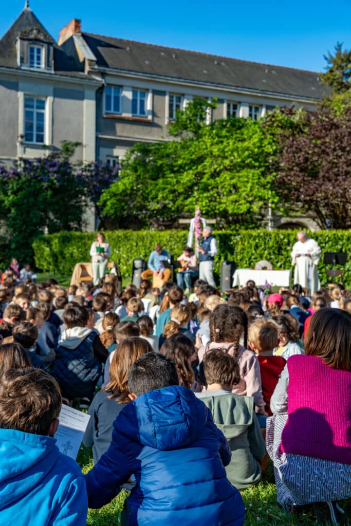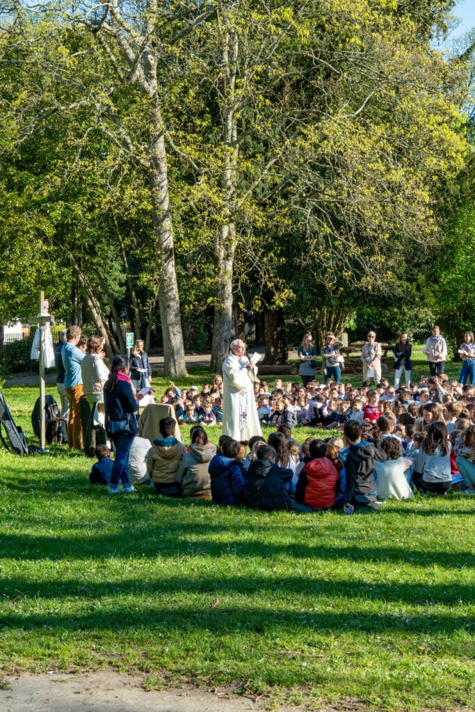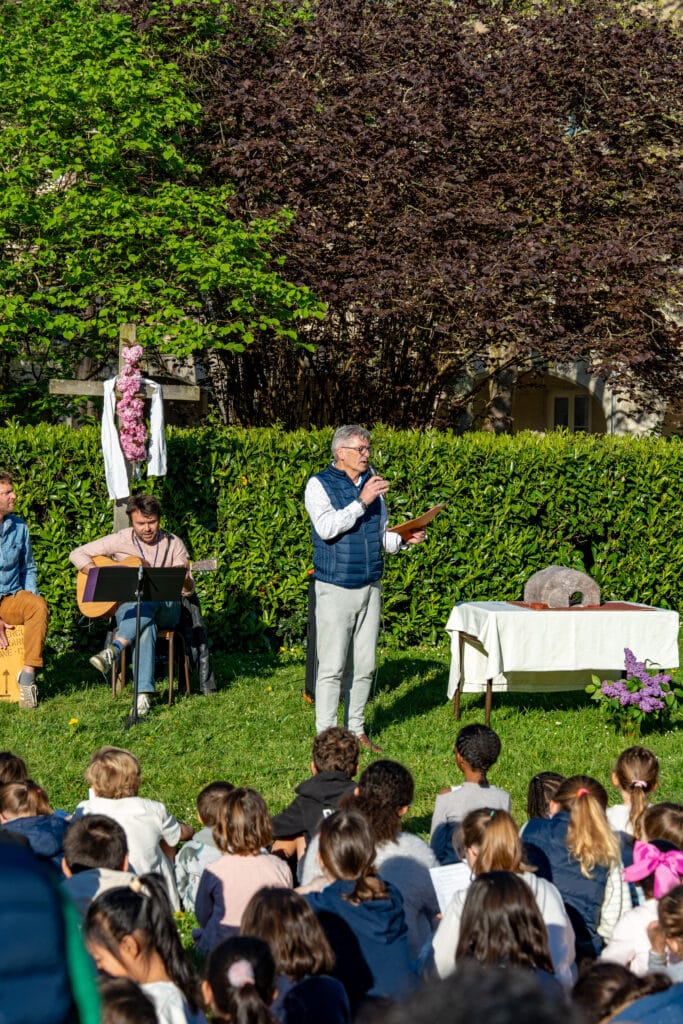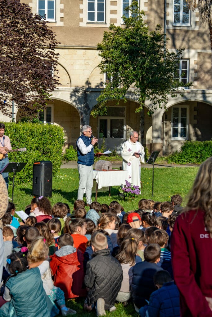 Mardi 7 avril, l’ensemble de l’école s’est réuni dans la cour Anjou pour la célébration de Pâques.