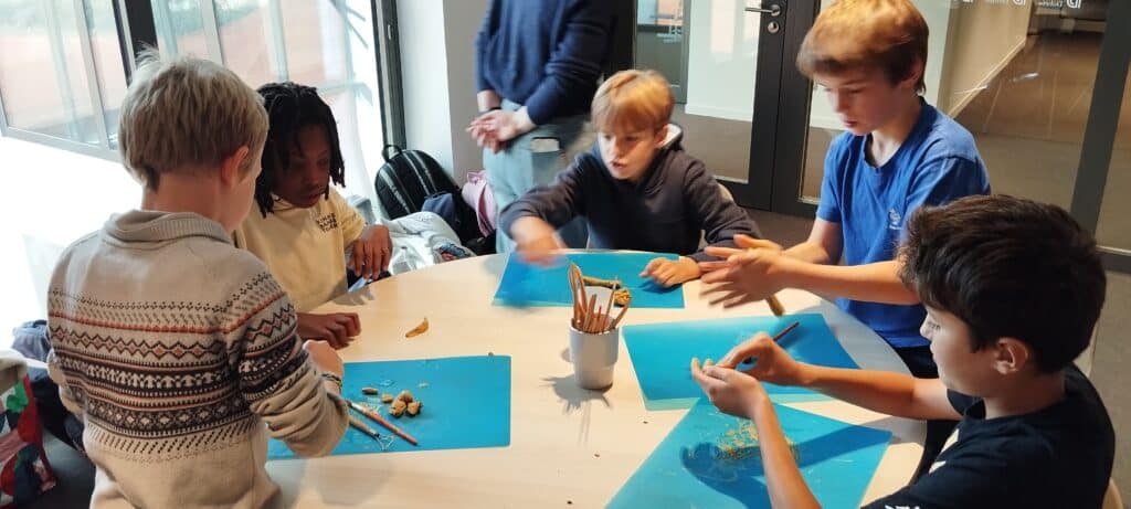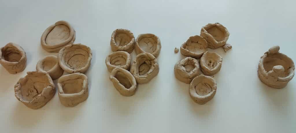 Après la visite, place à la poterie ! Les élèves ont expérimenté la technique du colombin, utilisée à la Préhistoire, en modelant des boudins d’argile superposés pour créer de petits pots.