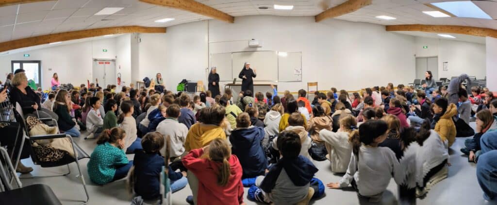 Au cours de leur intervention, les sœurs ont présenté aux élèves l’histoire de Jeanne Jugan, son appel à servir les plus fragiles et la mission poursuivie aujourd’hui par leur communauté : offrir un accompagnement bienveillant, un foyer et une présence attentive aux personnes âgées accueillies dans leurs maisons.
