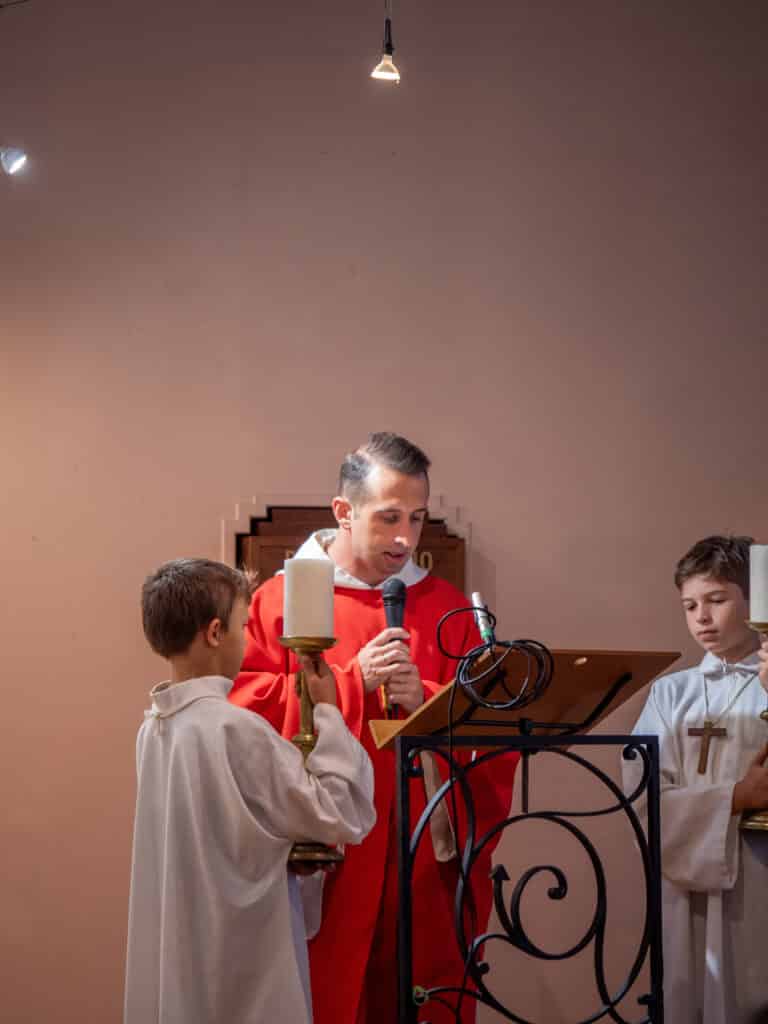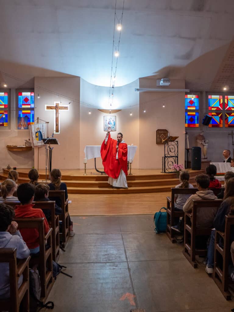 La célébration était présidée par le Père Antonio, nouveau prêtre accompagnateur de l’établissement, membre de la communauté du Chemin Neuf. Originaire d’Italie, le Père Antonio a partagé avec l’assemblée un témoignage profond et personnel sur son chemin de foi, suscitant l’écoute et la réflexion chez les jeunes.