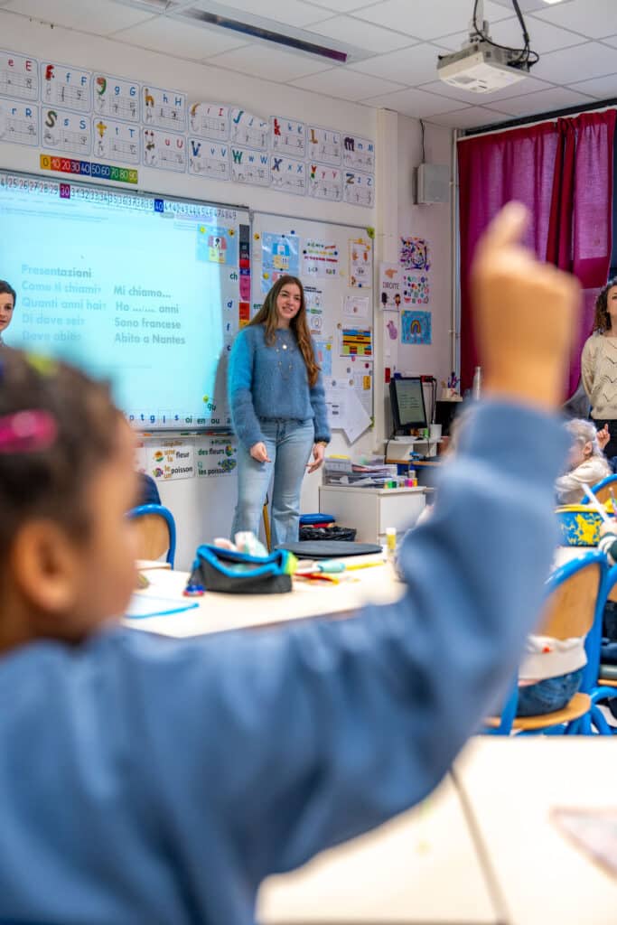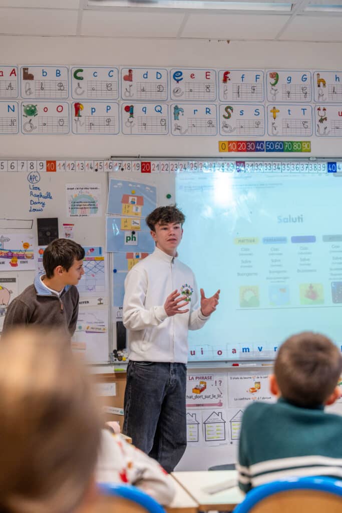 À cette occasion, des élèves de Seconde sont venus présenter du vocabulaire italien aux plus jeunes, jusque dans les classes de CP. Ces interventions ont permis un moment de partage entre élèves et une première approche ludique de la langue italienne pour les enfants de l’école.
