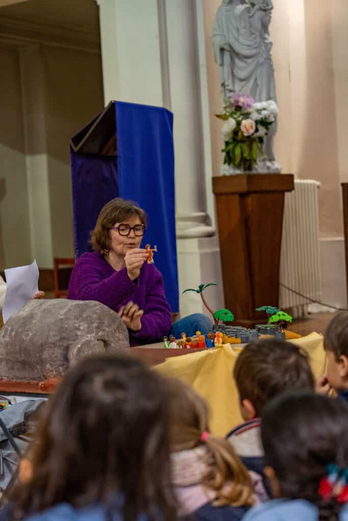 Tout au long de la semaine, les plus jeunes ont découvert la vie de Jésus à travers des mises en scène en Playmobil, une approche pédagogique adaptée qui leur permet d’entrer concrètement dans le mystère pascal.
